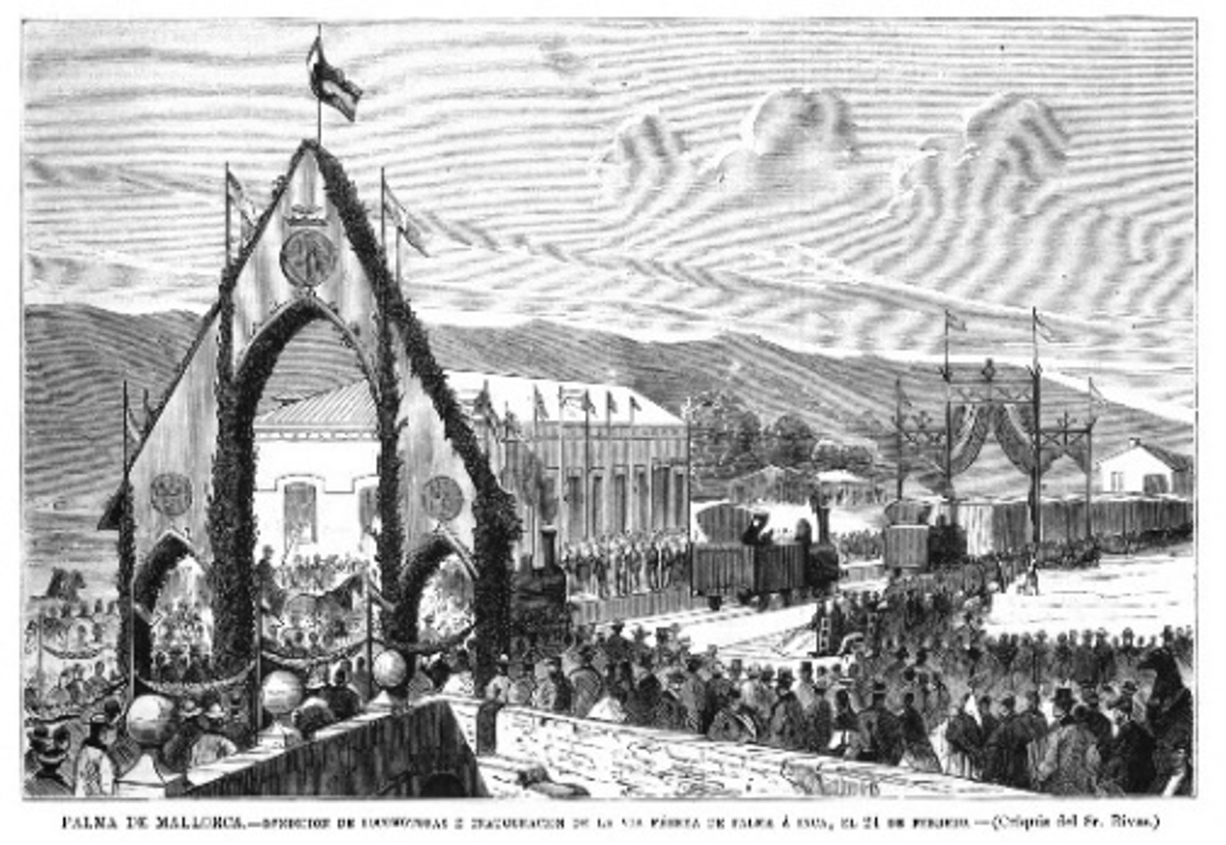 En 1875, después de tres años de una planificación y construcción dirigida personalmente por Eusebi Estada, se inauguró oficialmente la línea ferroviaria con una gran recepción por parte del público. Entre Palma e Inca el tren hacía parada en Es Pont d'Inca, Marratxí, Santa María del Camino, Consell, Binissalem y Lloseta.